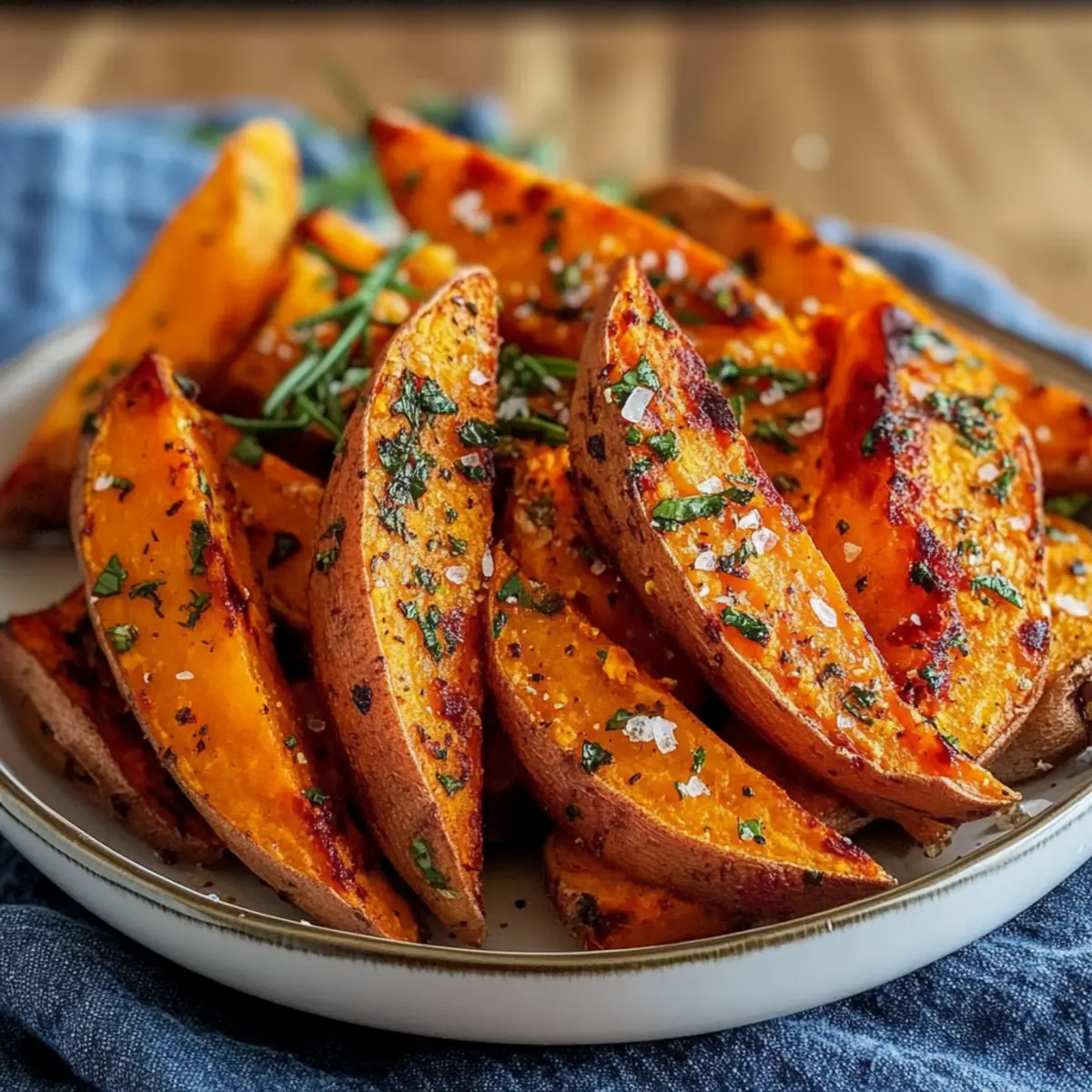 These 10-Min Crispy Air Fryer Sweet Potato Wedges are perfect for meal prep enthusiasts who want to save time during busy evenings! You can prepare the sweet potato wedges up to 24 hours in advance by washing, cutting, and tossing them with olive oil, minced garlic, and herbs. Once seasoned, place the wedges in an airtight container and refrigerate until you’re ready to cook. This method maintains their flavor and ensures they remain just as delicious when air frying. When it’s time to serve, simply preheat your air fryer and air fry the wedges for 8-10 minutes, flipping halfway through for that perfect crispiness. Enjoy your guilt-free snack with minimal effort!