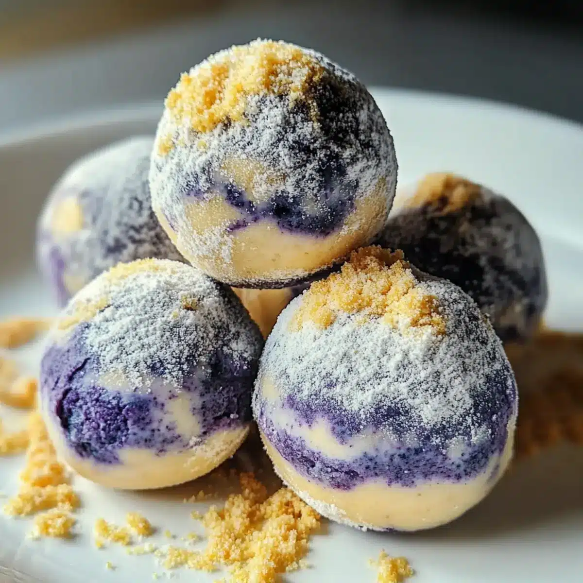 Once chilled, use your hands to roll the blueberry lemon mixture into bite-sized balls, about 1 inch in diameter. Then, coat each truffle in crushed graham crackers, pressing gently to ensure the crumbs adhere. Dust with powdered sugar for a touch of sweetness, and refrigerate the truffles again for another 15 minutes before serving.