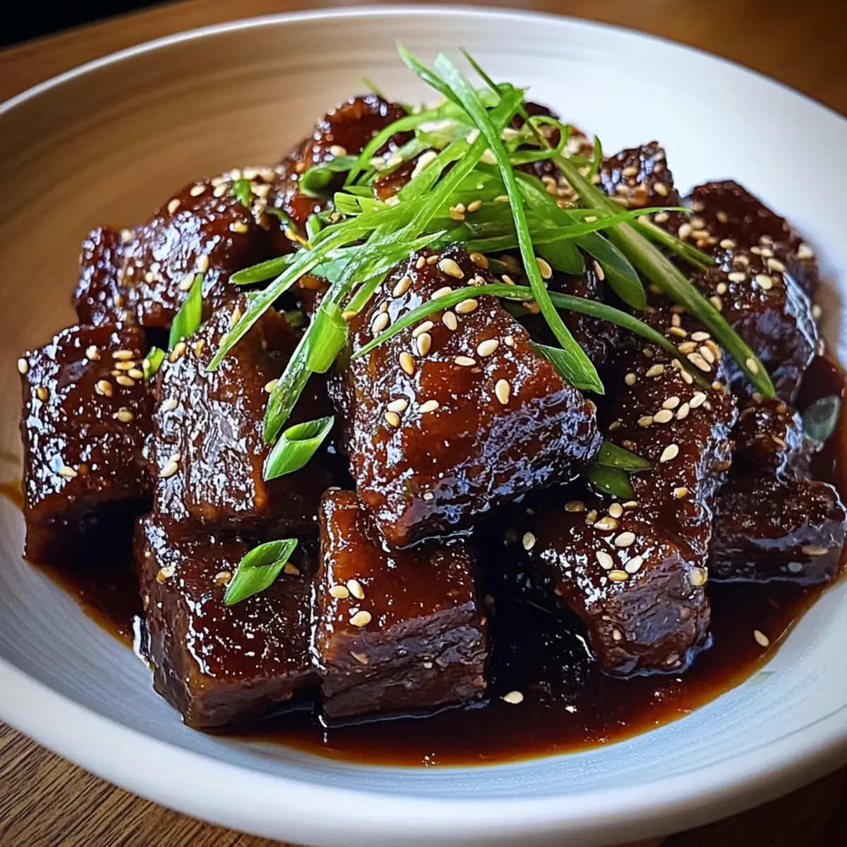 - Garnish and Serve: Garnish with sesame seeds and sliced green onions, then slice and serve with rice or noodles.
