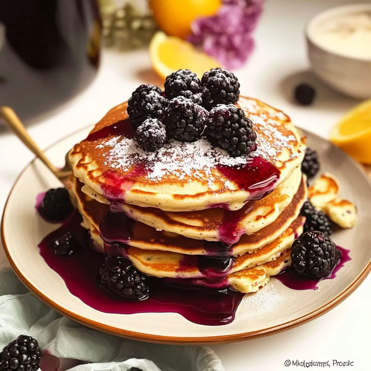 Fluffy Perfection: Each pancake is a light and fluffy delight, enhanced by juicy blackberries that provide bursts of flavor with every bite.