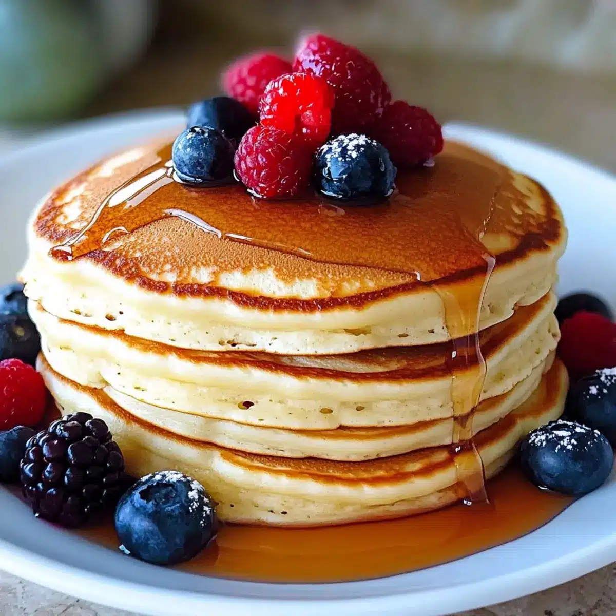 As I pull the first batch of buttermilk pancakes from the skillet, the golden aroma wafts through the air, instantly whisking me back to my childhood kitchen. There’s something magical about fluffy buttermilk pancakes that makes any morning feel extra special. This recipe isn’t just a crowd-pleaser; it’s adaptable for everyone at the table—dairy-free, gluten-free, or vegan options are all in play! Imagine a stack piled high, topped with fresh berries and maple syrup, inviting smiles and heartwarming moments. Perfect for a cozy weekend brunch or a quick weekday breakfast, these pancakes promise a delightful escape from the fast-food routine. Are you ready to flip some joy onto your plate?
