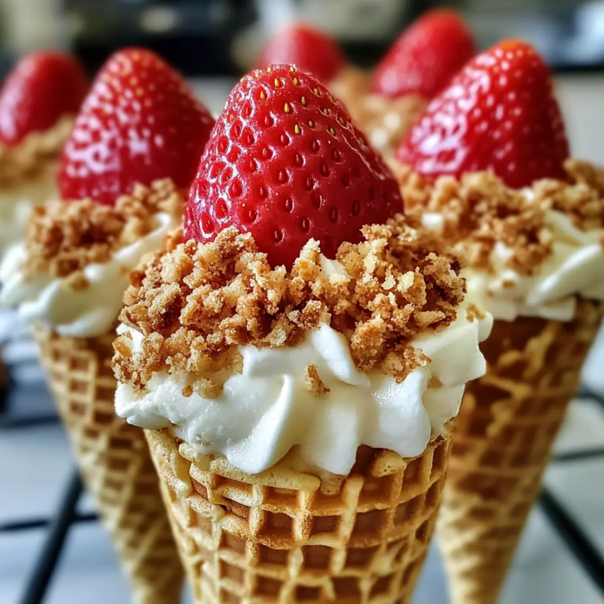 Refreshing Strawberry Crunch Cheesecake Cones for Sweet Joy