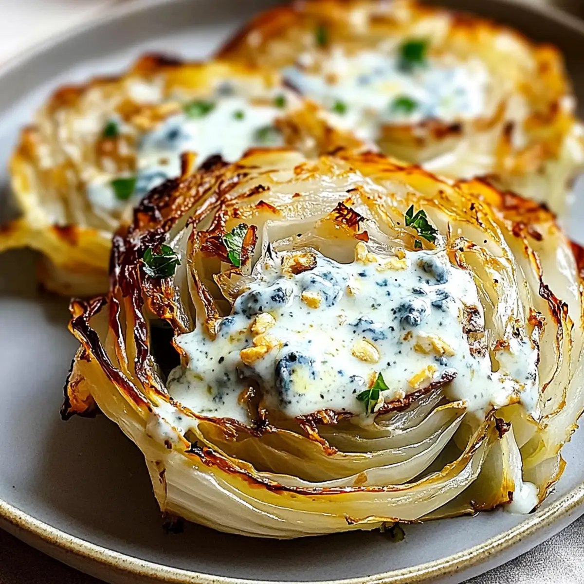 Savory Whole Roasted Cabbage with Blue Cheese Sauce Recipe