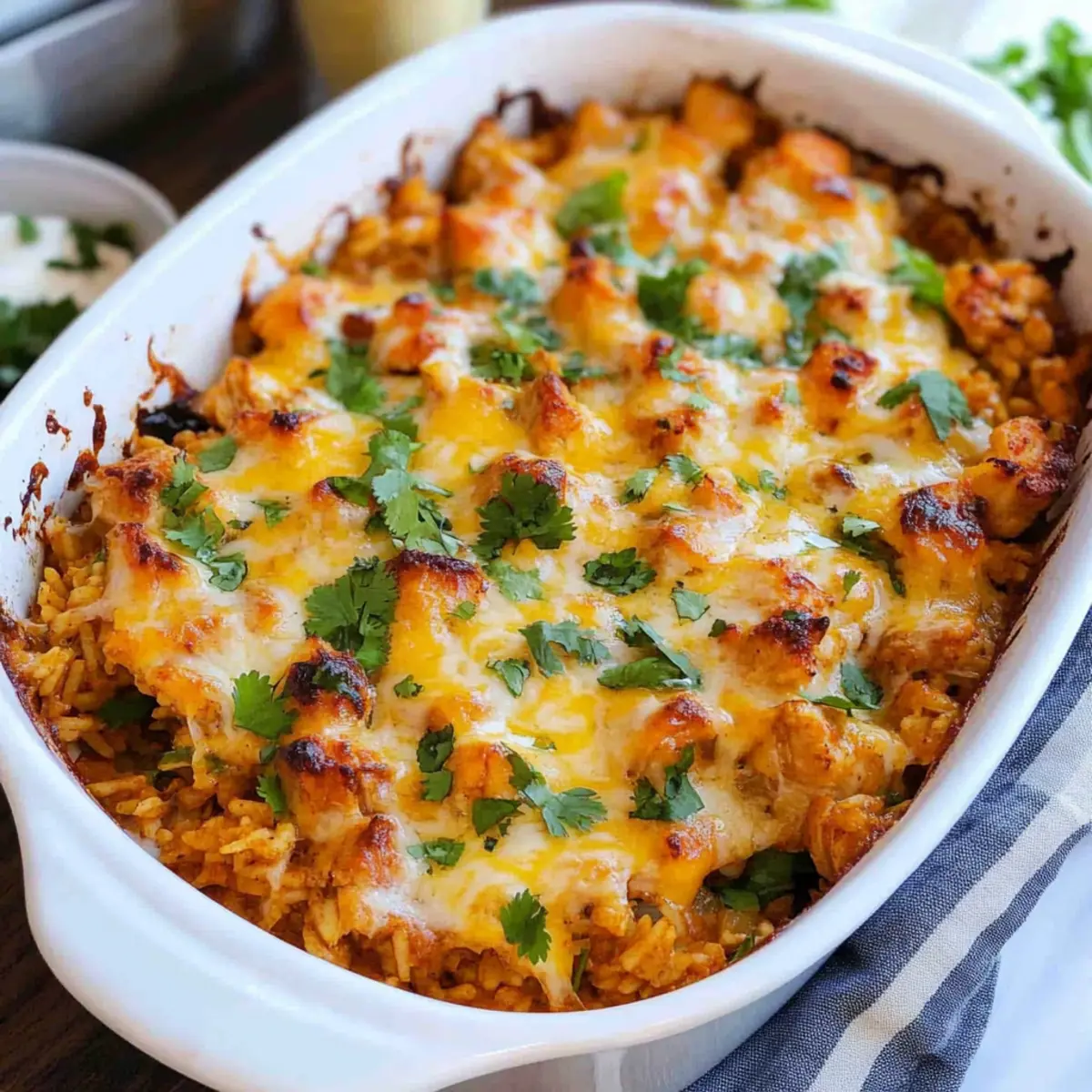 Cilantro Lime Rice: Fluffy rice infused with cilantro and lime zest brings brightness to the meal. Its citrus notes are a perfect foil for the richness of the casserole.