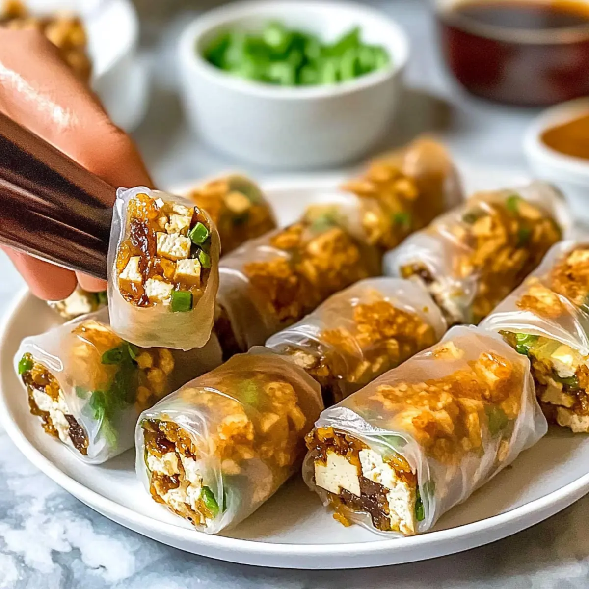These Crispy Air Fryer Rice Paper Rolls are perfect for meal prep enthusiasts! You can prepare the filling—even up to 3 days in advance—by cooking the tofu and vegetables, then storing them in an airtight container in the refrigerator. The rice paper wraps can also be soaked up to 24 hours ahead of time; just make sure to keep them flat between layers of damp paper towels to prevent sticking. When you’re ready to enjoy, simply reassemble the rolls and air fry them as instructed for warm, crispy goodness. With these make-ahead options, you’ll save precious time during busy weeknights while still serving a delightful and fresh homemade appetizer!