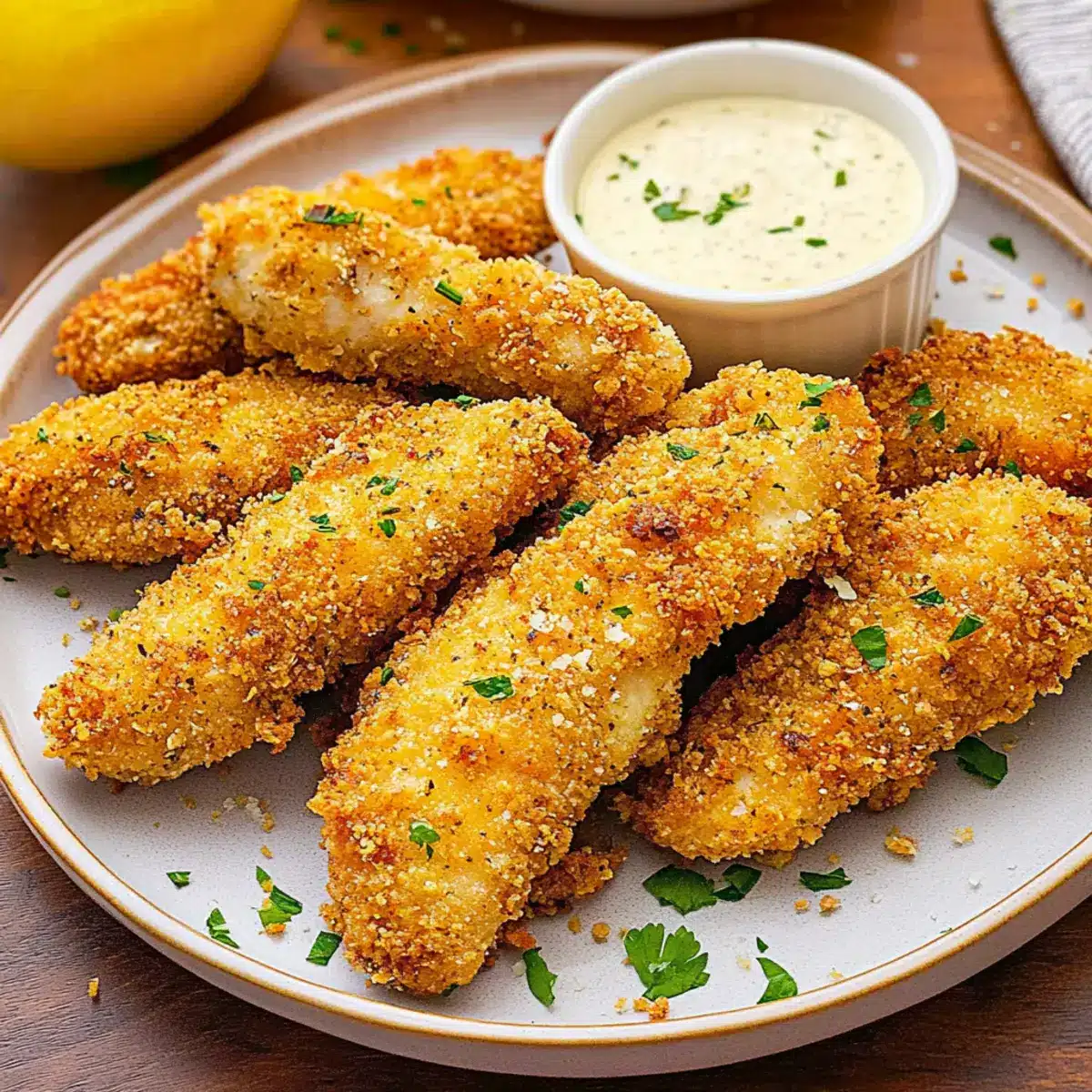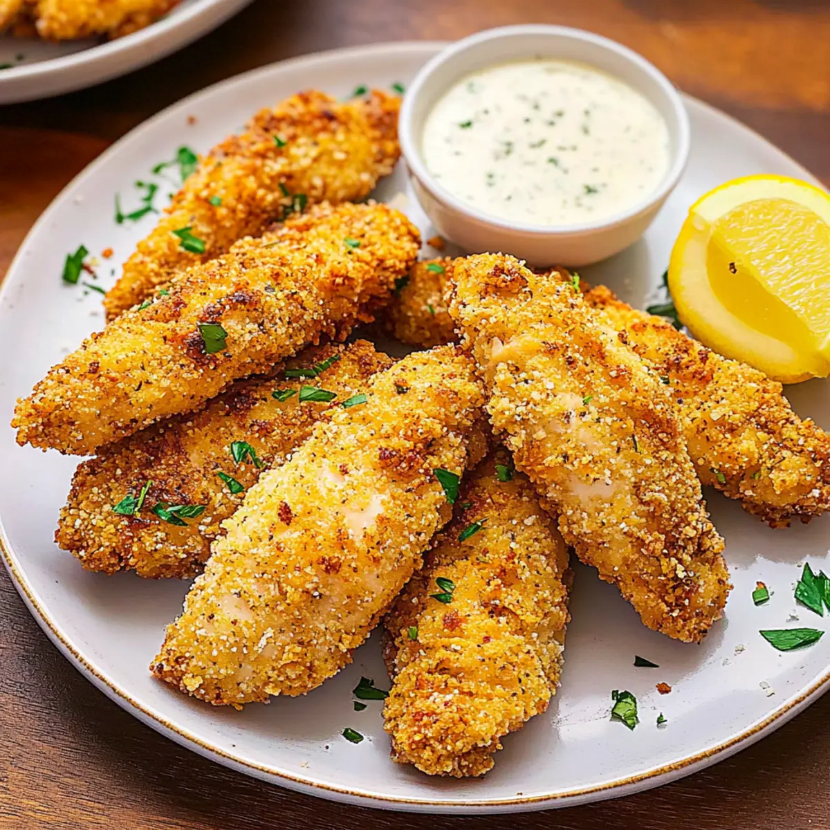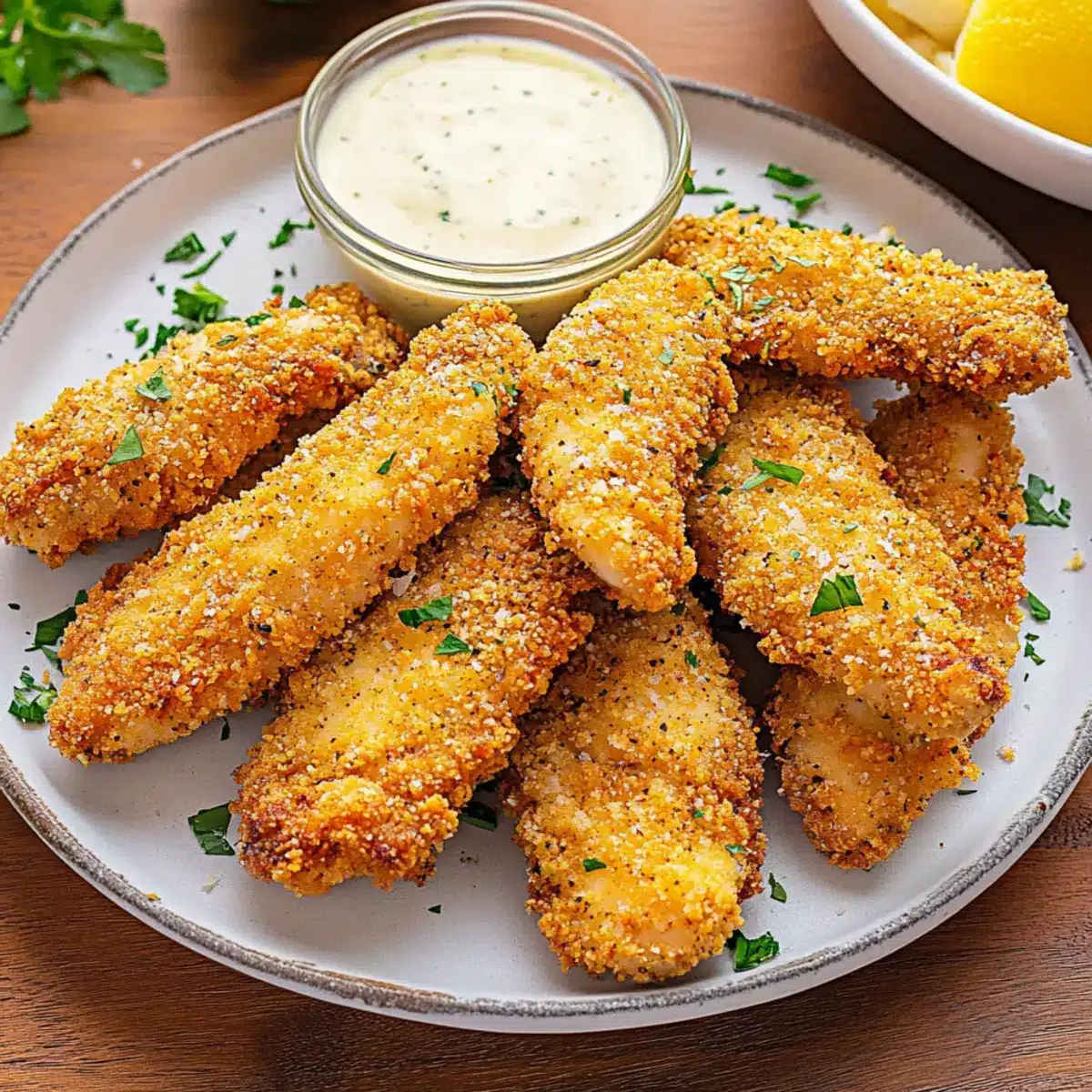 - Caesar Dressing – Acts as a flavorful marinade and binder to coat the chicken strips perfectly.