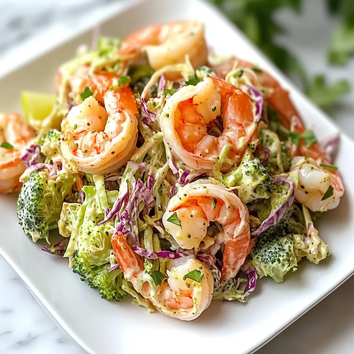 To keep your salad fresh, store any leftovers in an airtight container in the fridge for up to 2 days. It’s best to keep the shrimp and broccoli slaw separate to maintain that delightful crunch. This way, each bite remains as satisfying as the first!