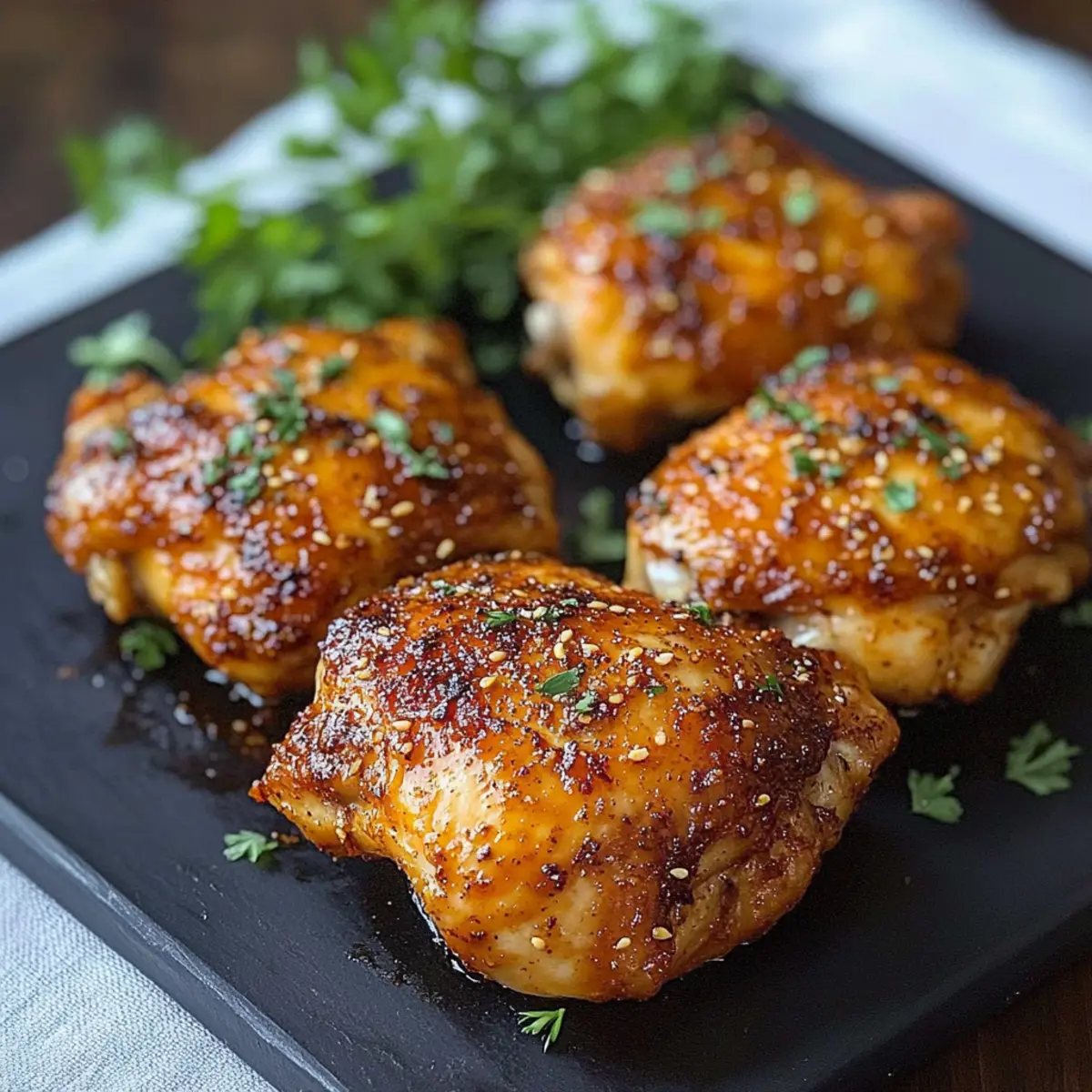 Absolutely! To freeze, wrap each chicken thigh tightly in plastic wrap, then place them in a freezer-safe container or a vacuum-sealed bag. They will keep well for up to 3 months. When you’re ready to enjoy them, simply thaw in the fridge overnight and reheat in the oven at 375°F for about 15-20 minutes for that delicious crispiness.