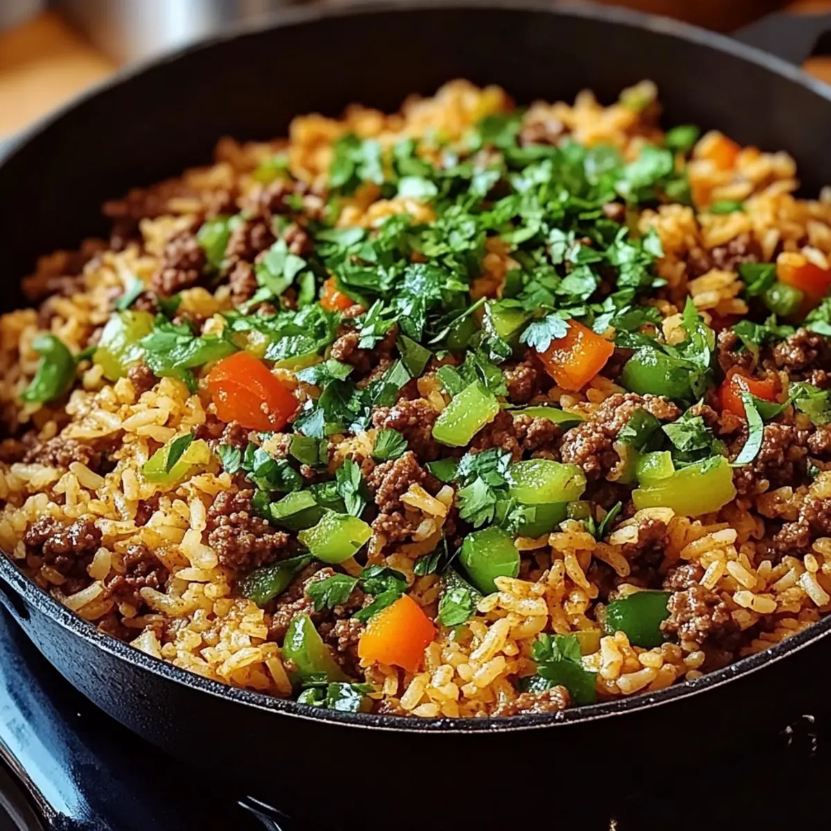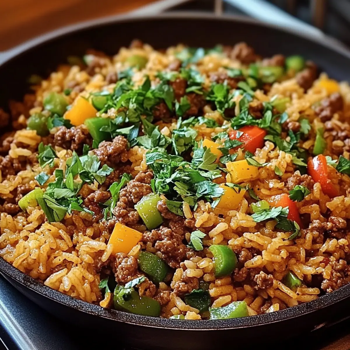 Absolutely! For the best flavor and texture, choose day-old cooked rice; it helps prevent mushiness. For the ground beef, opt for lean cuts to reduce greasiness. When it comes to bell peppers, green adds a nice crunch, but feel free to switch to sweeter varieties like red or yellow! Always look for fresh herbs and vibrant vegetables without dark spots or blemishes for the best results.