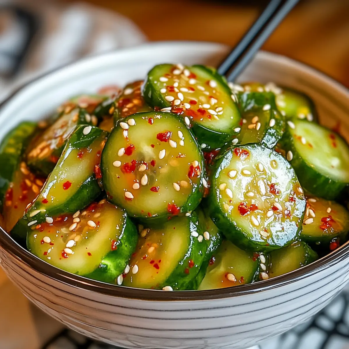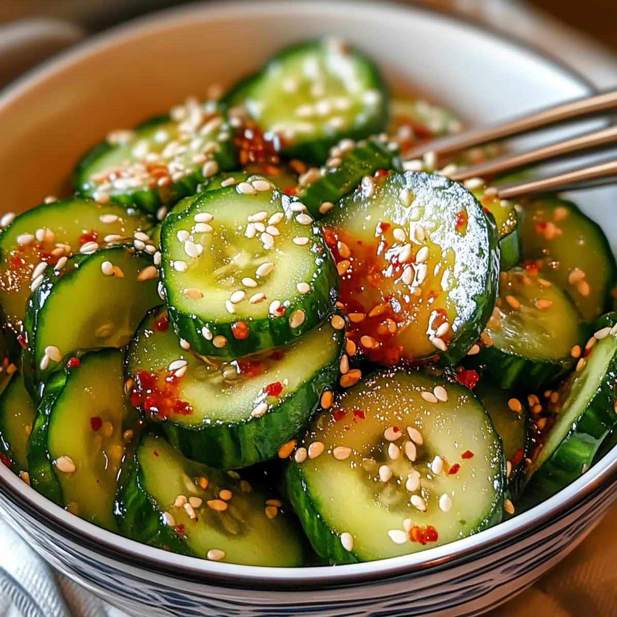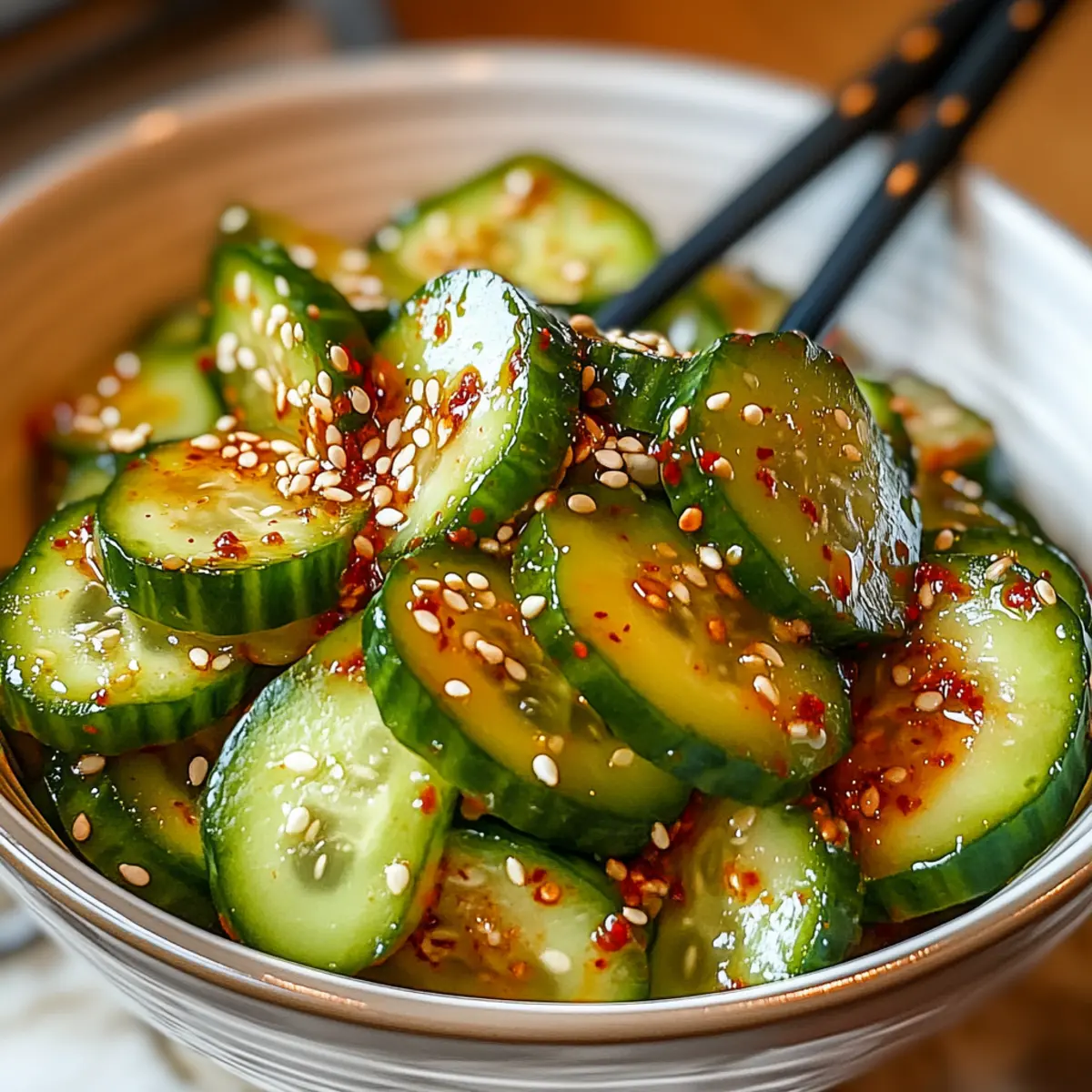 Tangy Flavor Burst: The vibrant dressing combines tanginess and spice, elevating ordinary cucumbers into an extraordinary dish.