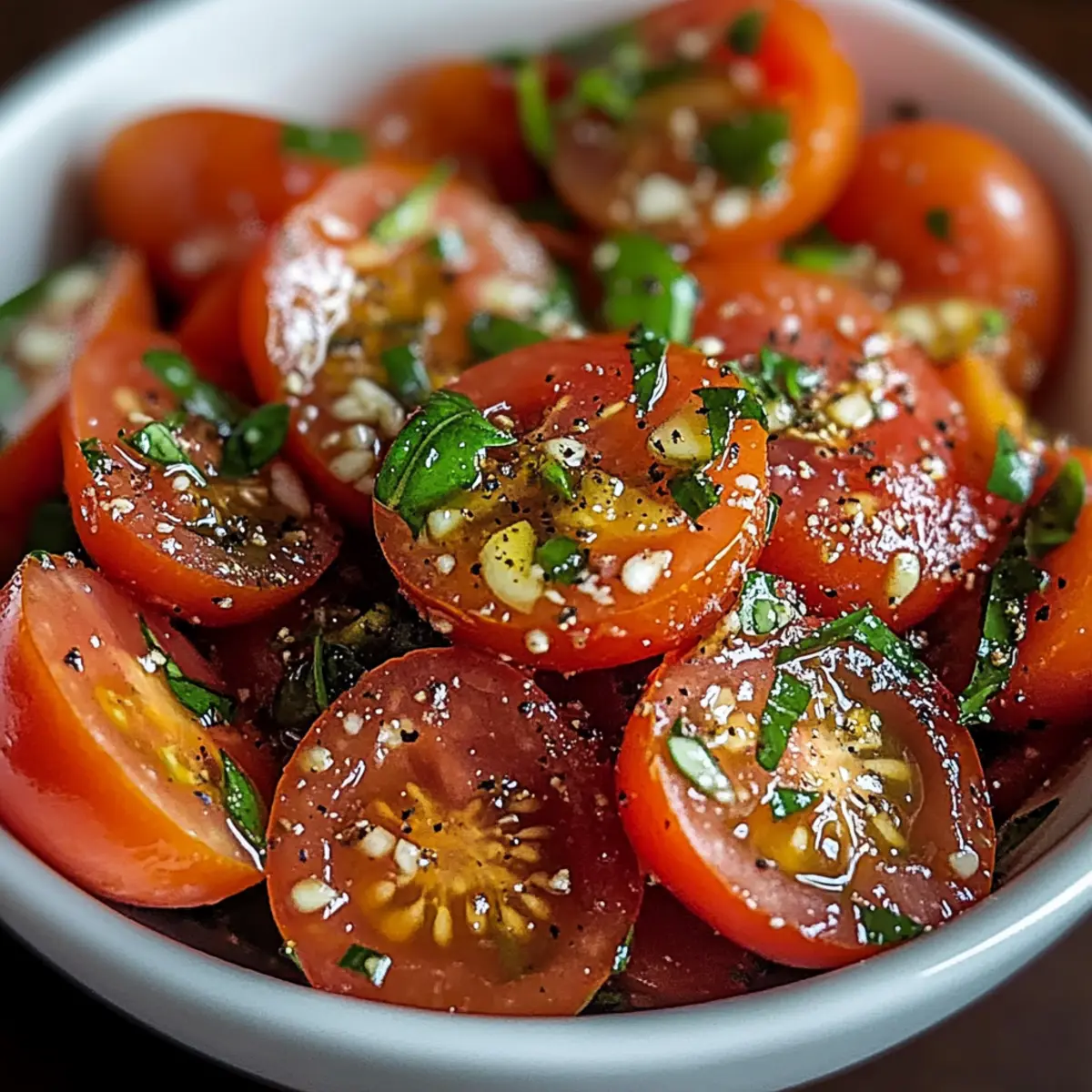Serving fresh: Mix the salad just before serving for optimal taste and texture. This keeps the tomatoes juicy and the herbs vibrant in your Fresh and Flavorful Tomato Garlic Salad.