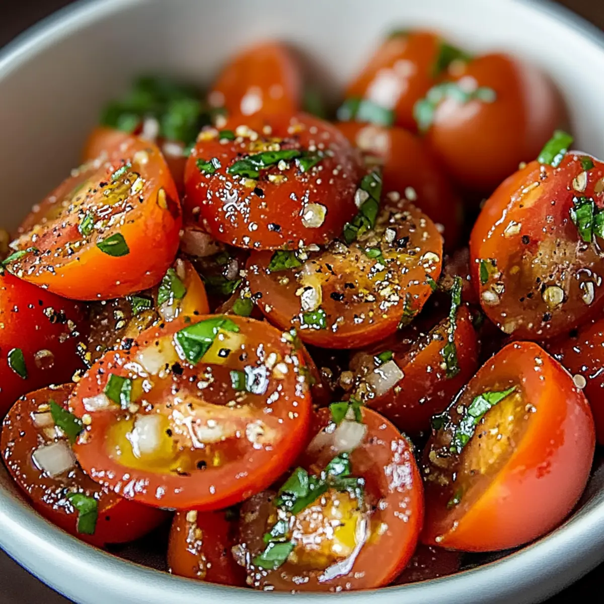 Mix Just Before Serving: To keep the salad from becoming soggy, only combine the dressing with the tomatoes right before you plan to enjoy it.