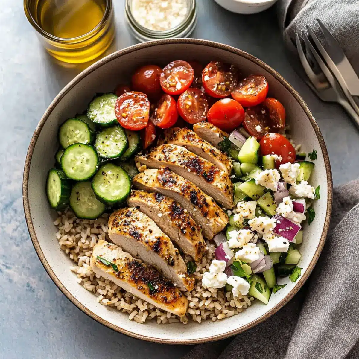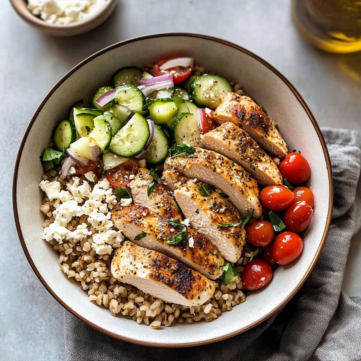 As I stirred the bright, zesty vinaigrette in my kitchen, I couldn’t help but think how a simple meal can transport you to sun-soaked shores. These Easy Greek Chicken Bowls combine tender, Greek-seasoned chicken breast with fluffy brown rice and a refreshing cucumber salad, bringing the taste of summer directly to your table. This healthy dish not only bursts with color and nutrition but is also a quick-to-prepare weeknight dinner, making it perfect for those busier evenings when you still crave something homemade. With options to personalize ingredients, you can easily adapt to your preferences while keeping it effortless. Are you ready to savor the Mediterranean? Let’s dive into this delicious journey!