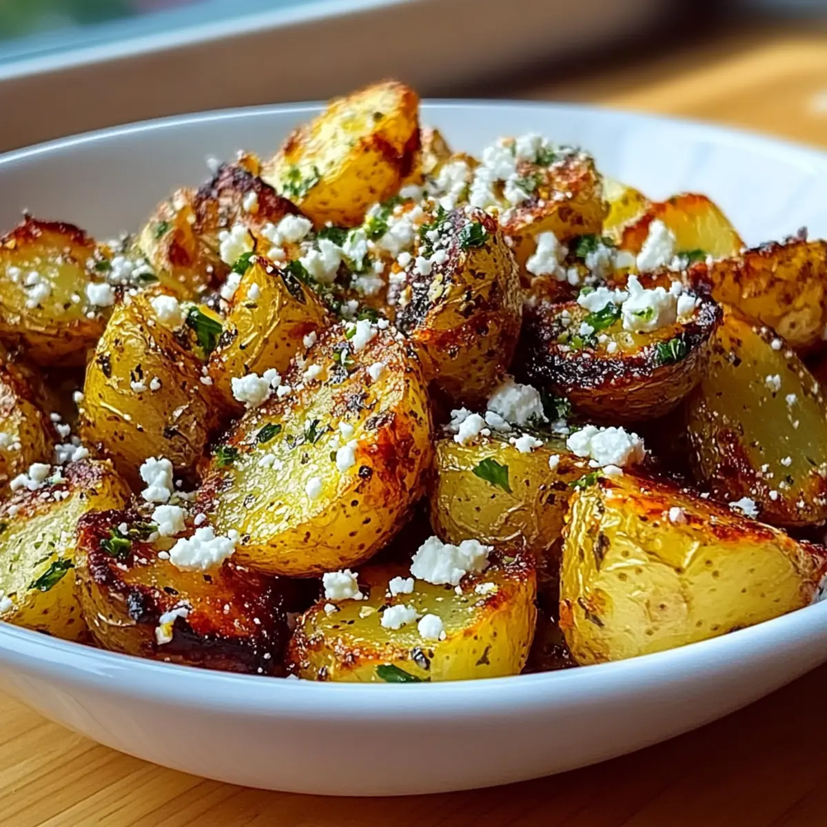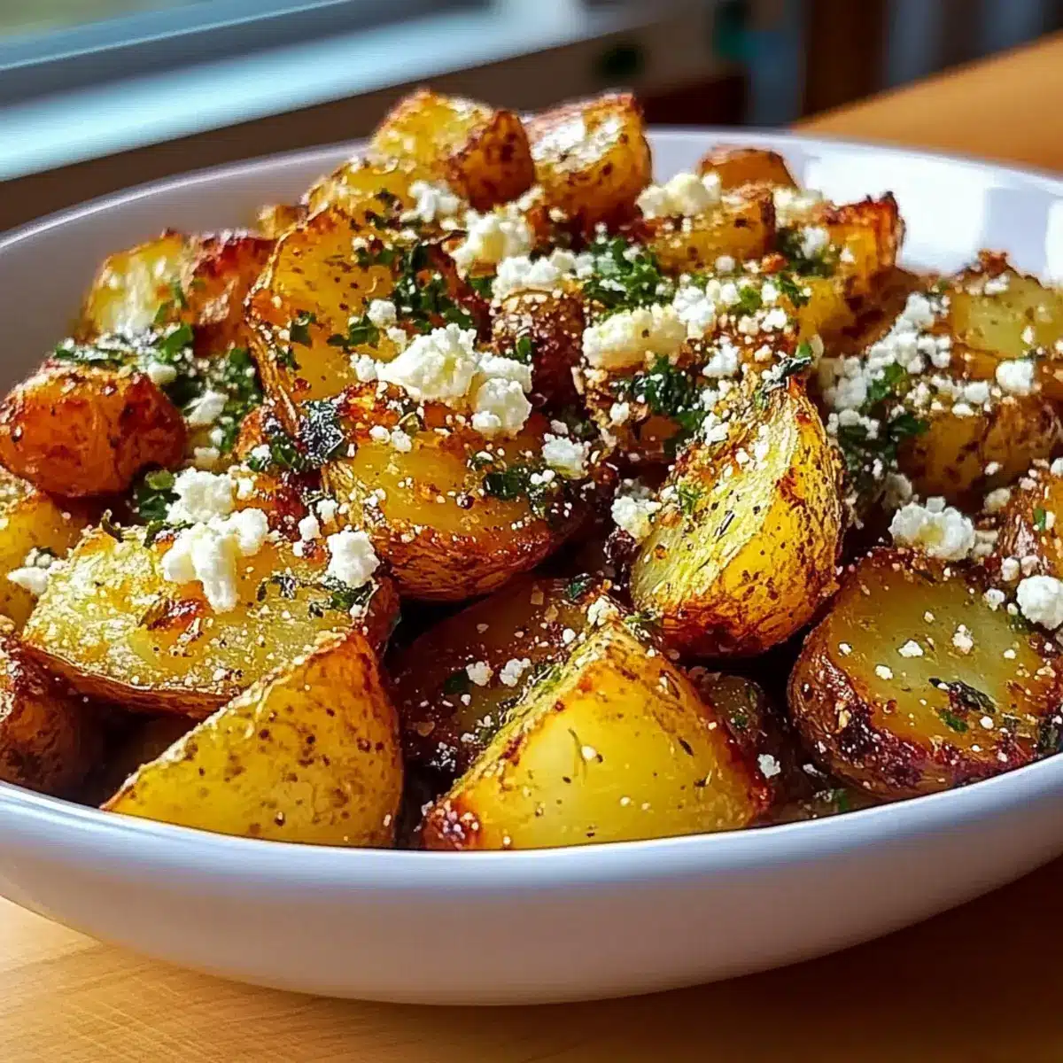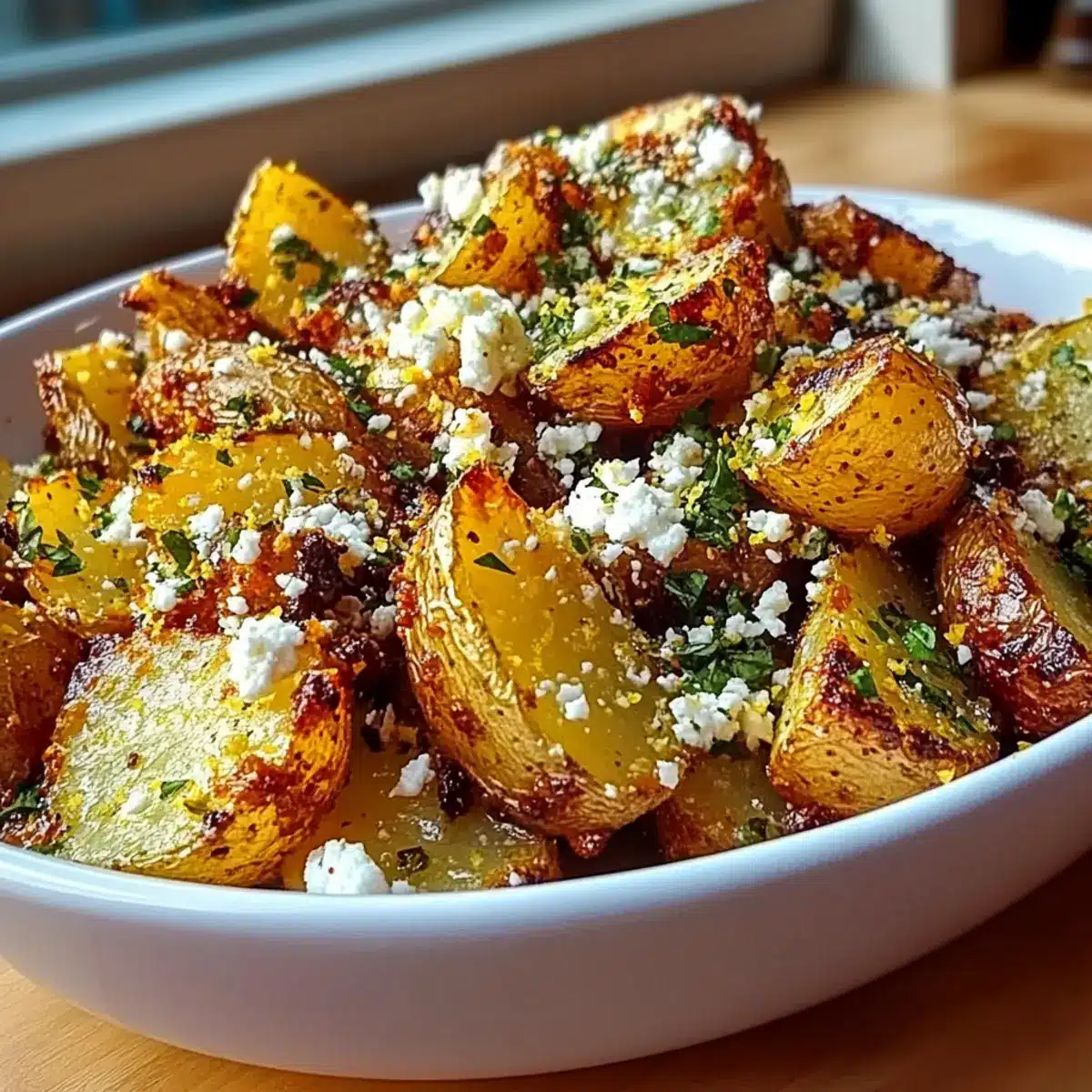 Crispy Greek Roast Potatoes with Lemon and Feta Recipe