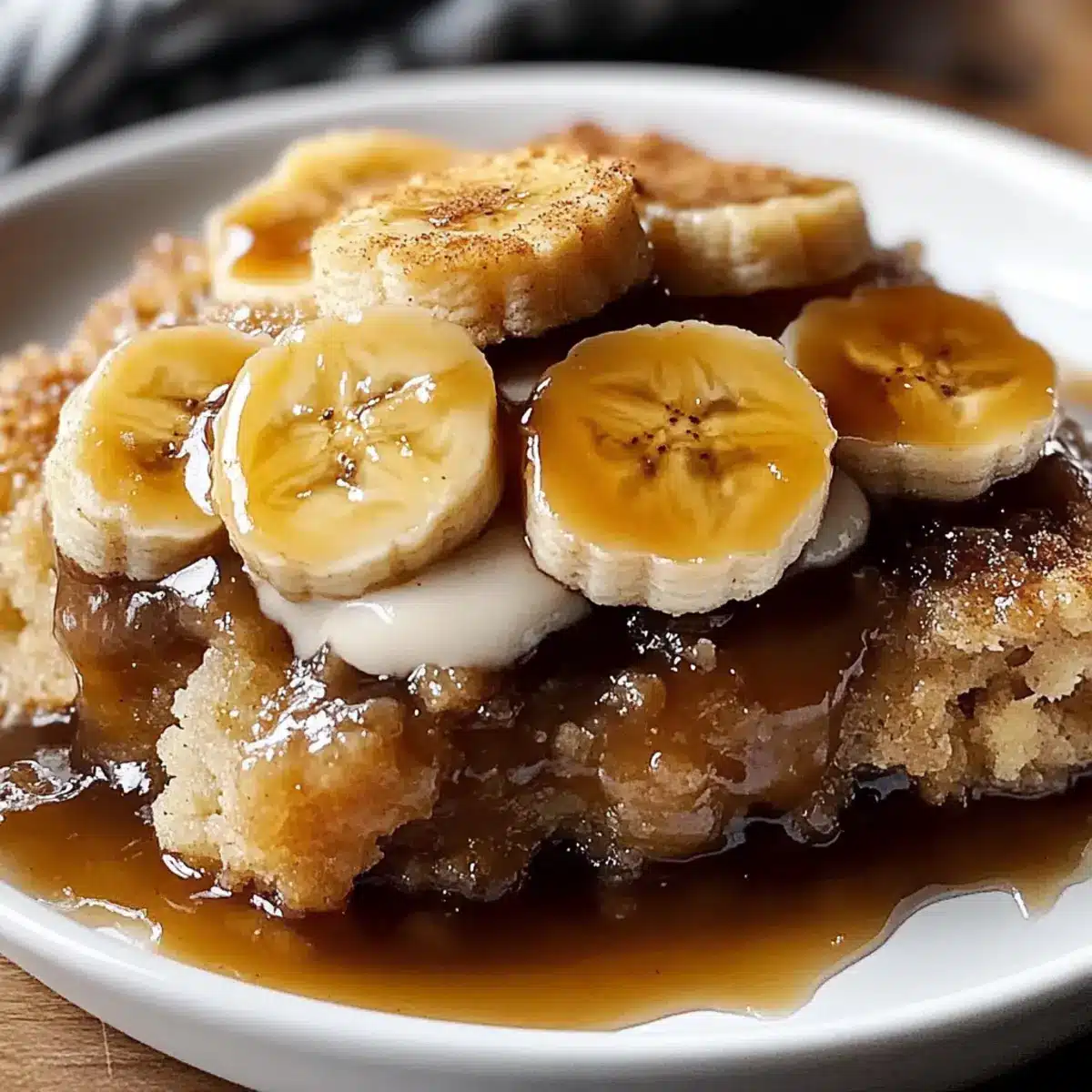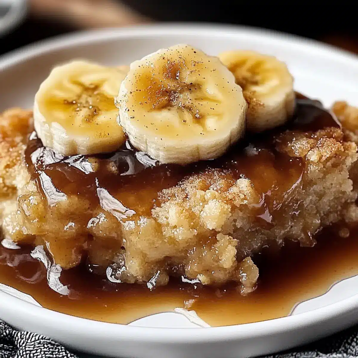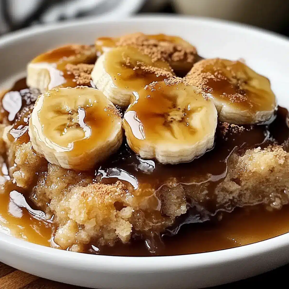 Comforting, Nostalgic Dessert: The warm flavors of caramelized bananas wrapped in a gooey biscuit topping bring back sweet memories of home-cooked treats.