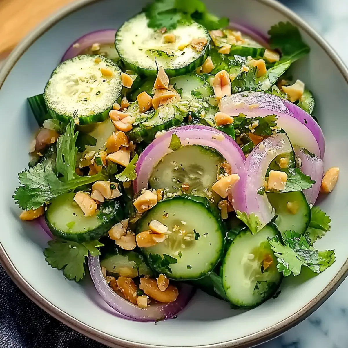 - Peanut Timing: Add chopped peanuts just before serving to maintain their delightful crunch; this ensures every bite of your Juicy Thai Cucumber Salad stays satisfying.