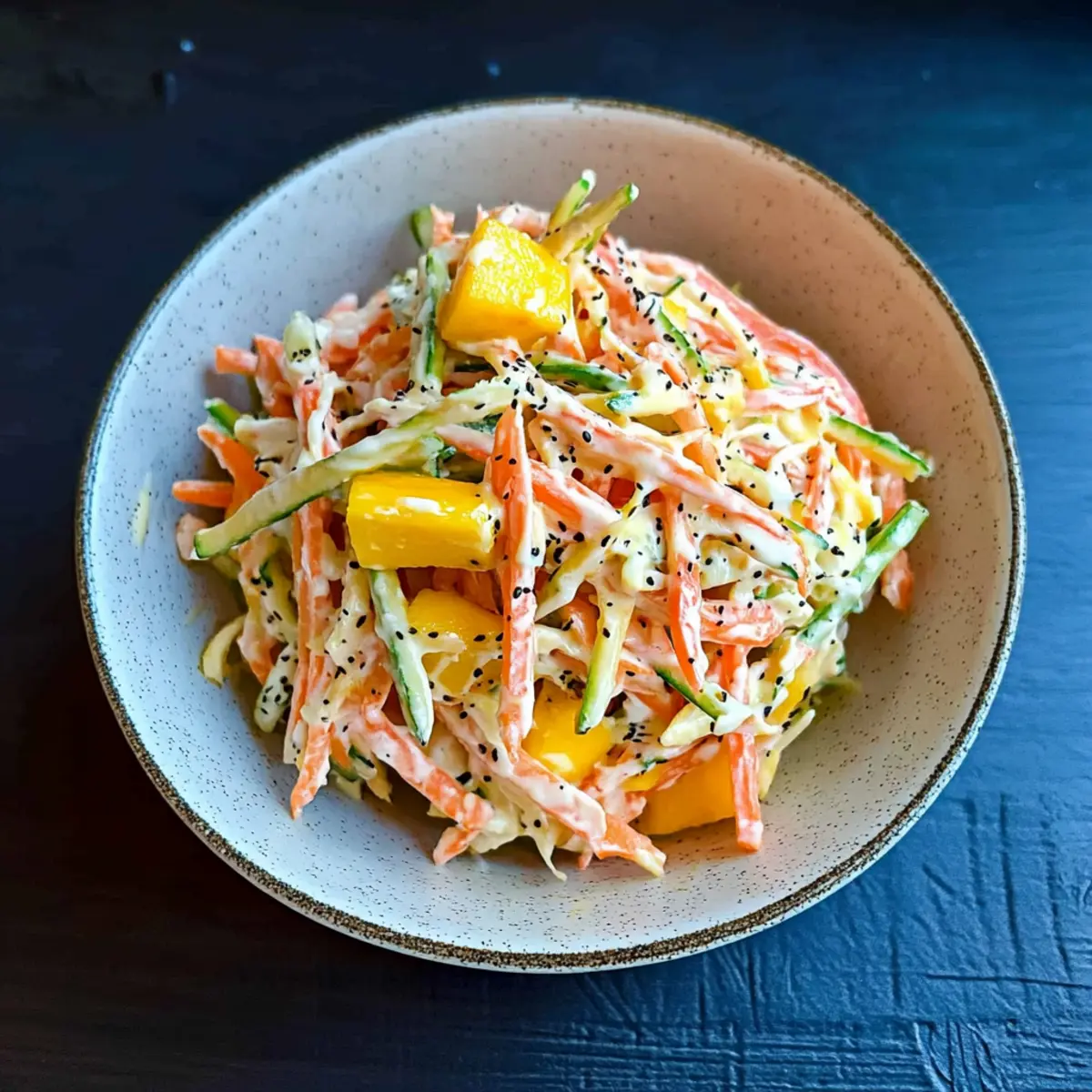 Vibrant Flavors: The combination of sweet mango and crunchy vegetables with a creamy, spicy dressing makes every bite a burst of flavor.