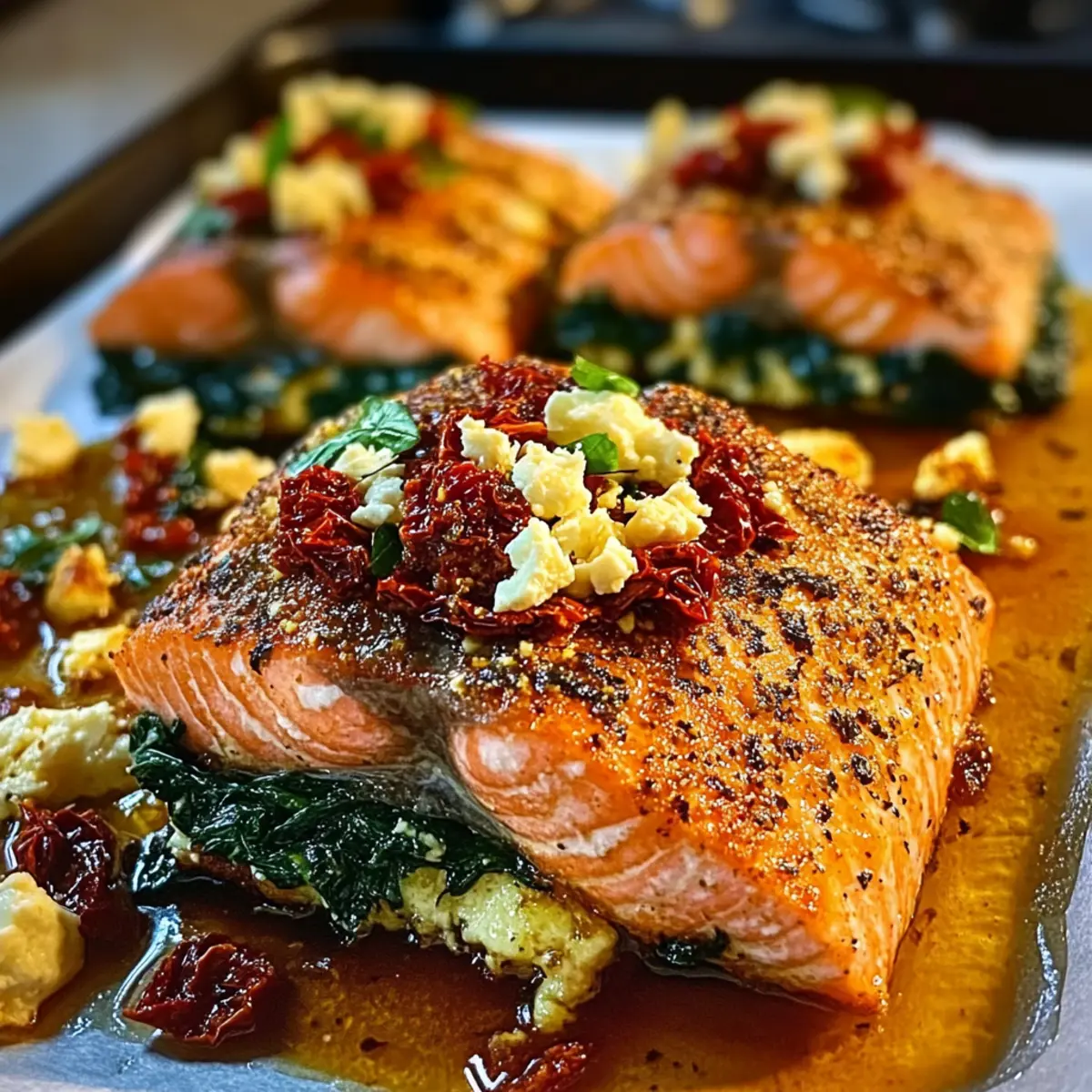These Mediterranean Stuffed Salmon are an ideal choice for meal prep! You can prepare the stuffing with spinach, sun-dried tomatoes, and feta cheese up to 24 hours in advance. Simply store the mixture in an airtight container in the refrigerator. When you’re ready to enjoy this delightful dish, just cut pockets in the salmon fillets and stuff them with your prepared filling. Drizzle with olive oil and season as directed before baking for an easy, delicious dinner. Remember, squeezing fresh lemon juice over the salmon just before serving ensures it retains that bright flavor profile, making it just as tasty as when freshly made!