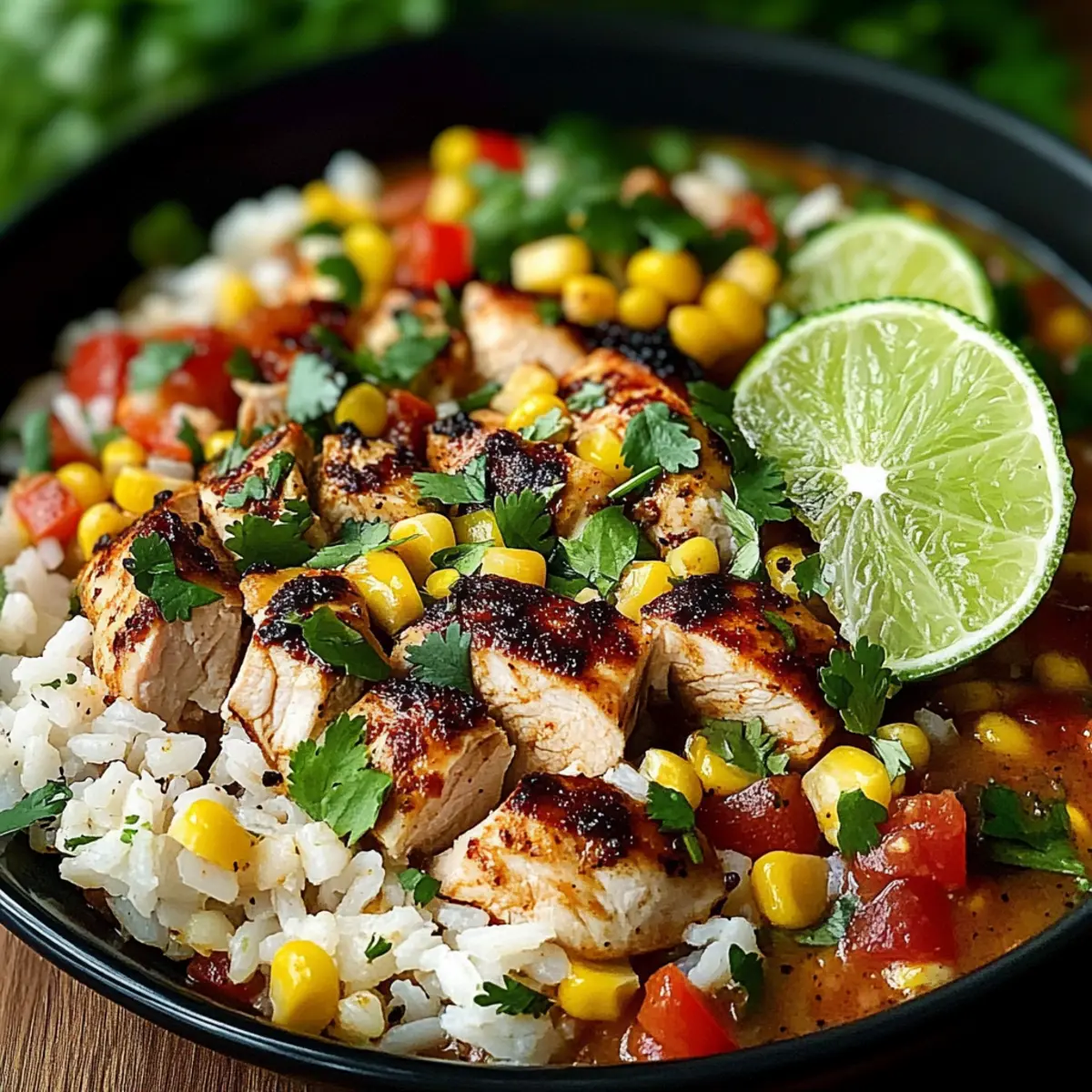 - Ladle the Mexican Lime Chicken Rice into bowls, and generously garnish with fresh cilantro leaves. Serve with lime wedges on the side for an extra zing. Enjoy the vibrant colors and refreshing tastes of this hearty dish!