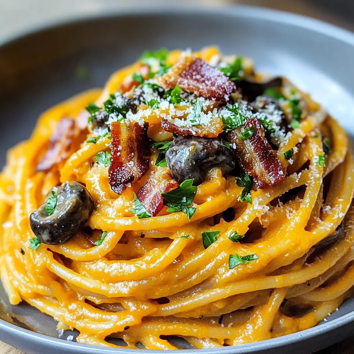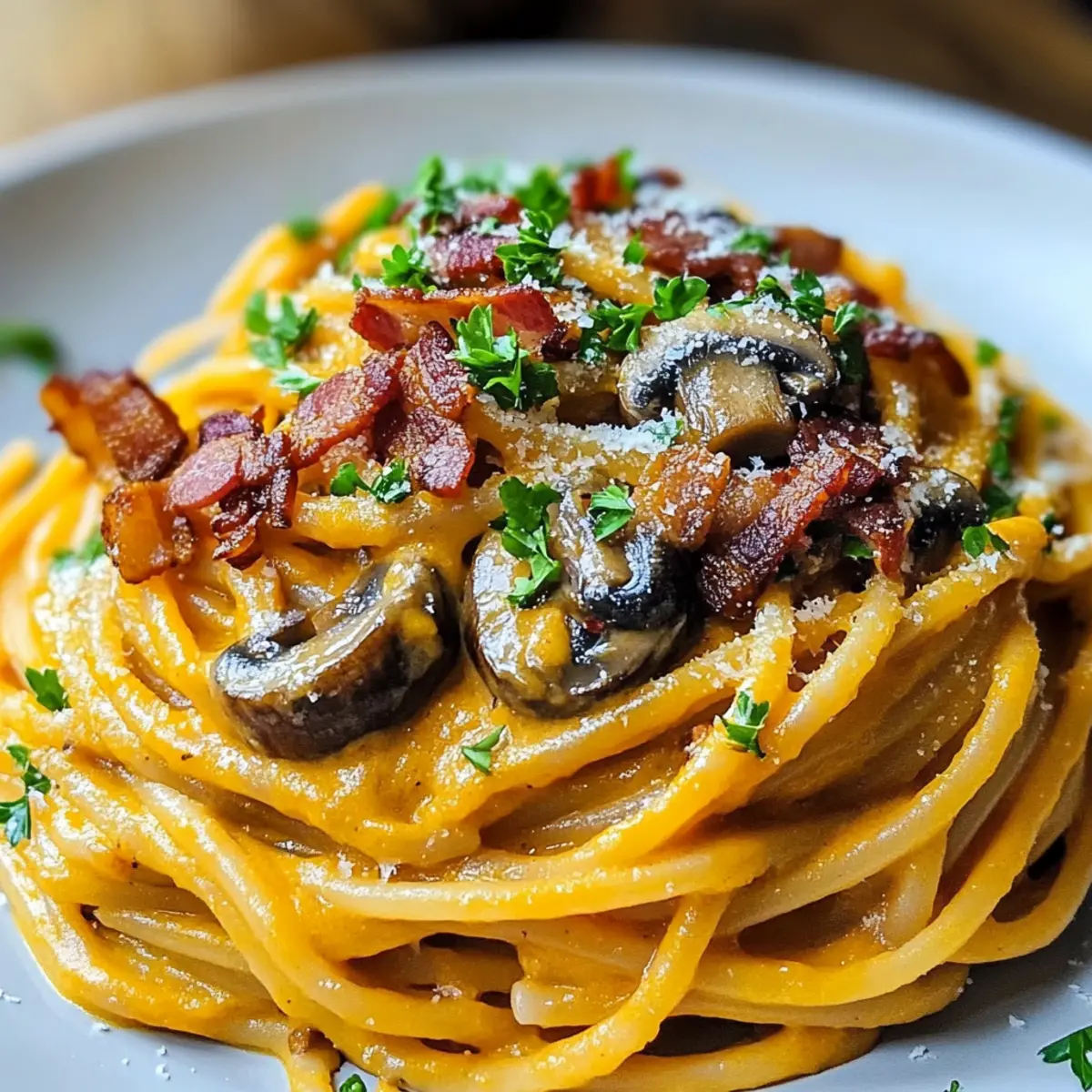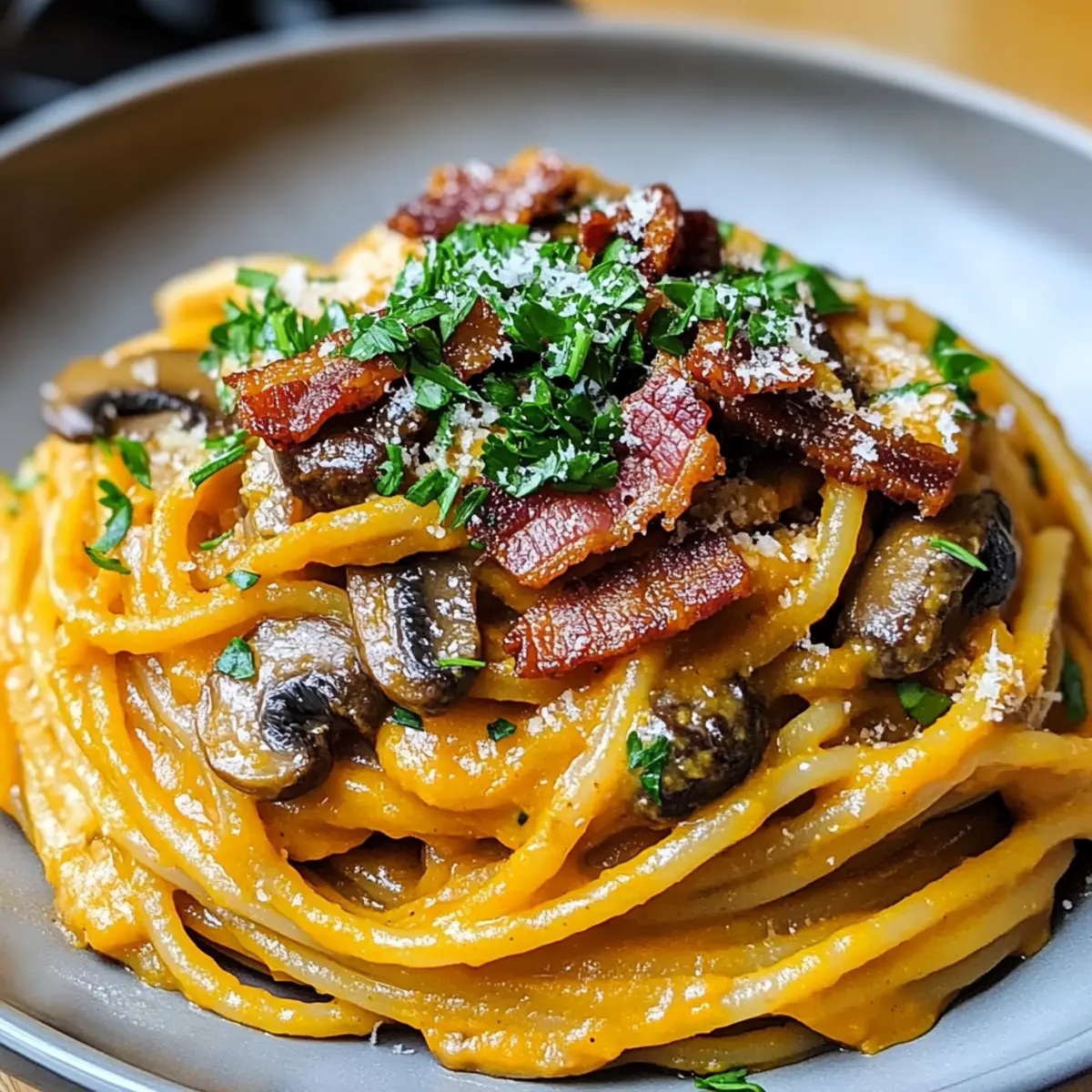 Savory Pumpkin Mushroom Spaghetti & Crispy Beef Bacon Bliss