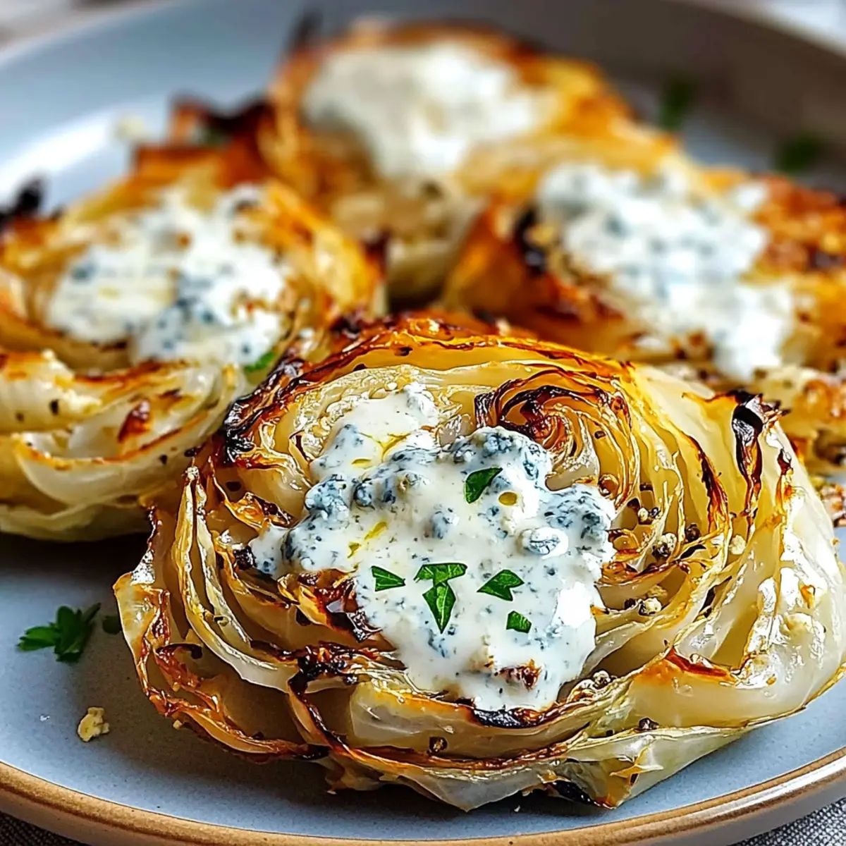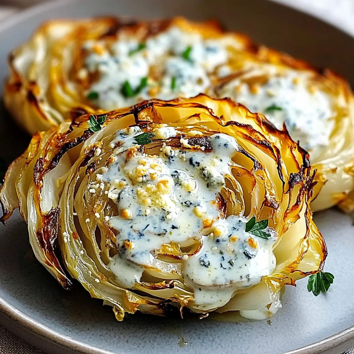 Savory Whole Roasted Cabbage with Blue Cheese Sauce Recipe