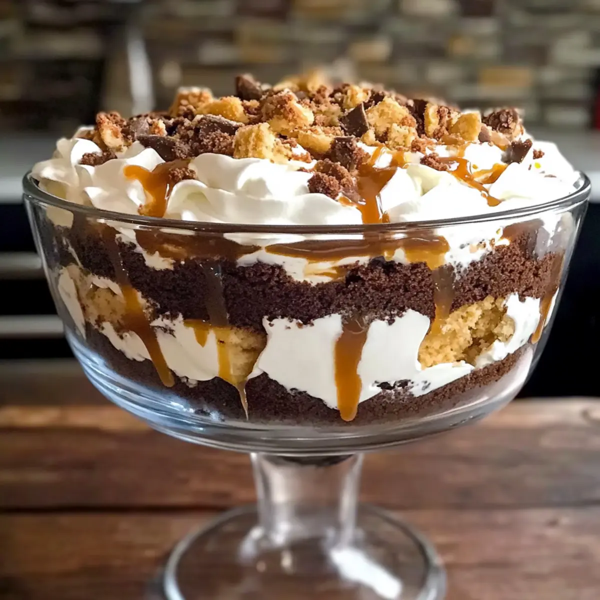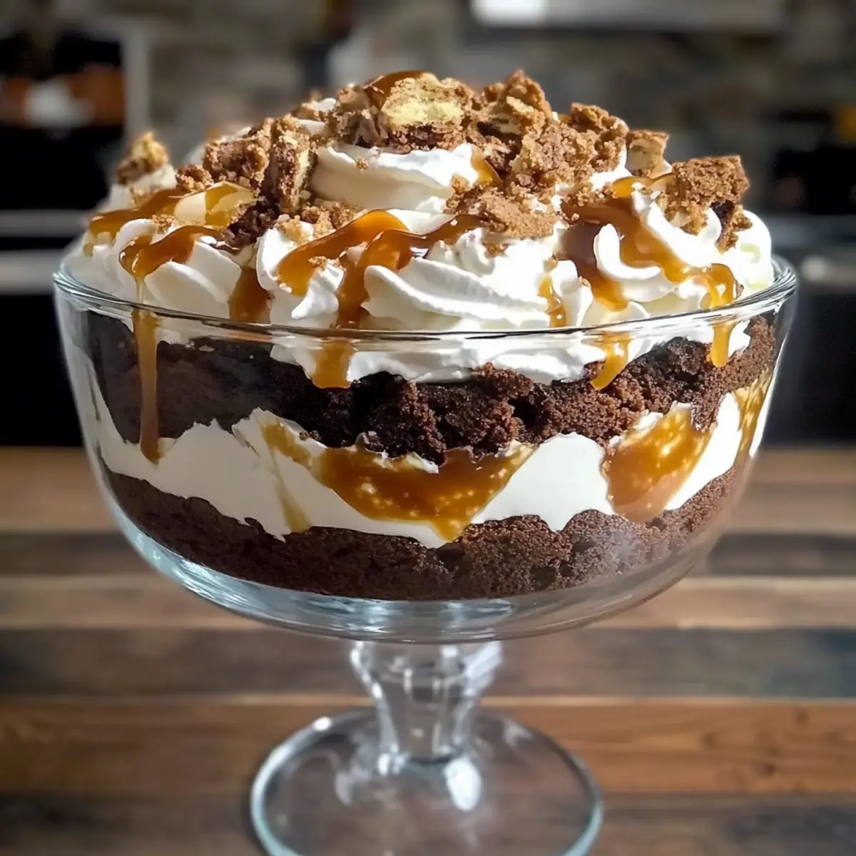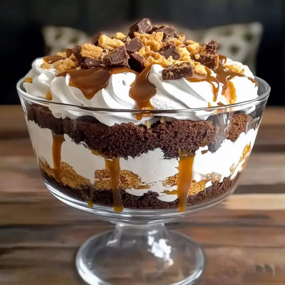 For the final flourish, sprinkle a generous amount of crushed Heath bars over the top layer of whipped cream. This will not only enhance the flavor but also provide a charming crunch. The sight of the finished trifle will be stunning, creating a visual feast as much as a flavor one, ready to impress anyone lucky enough to enjoy it.