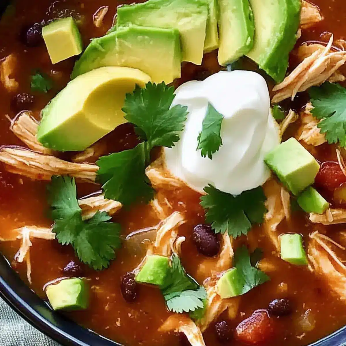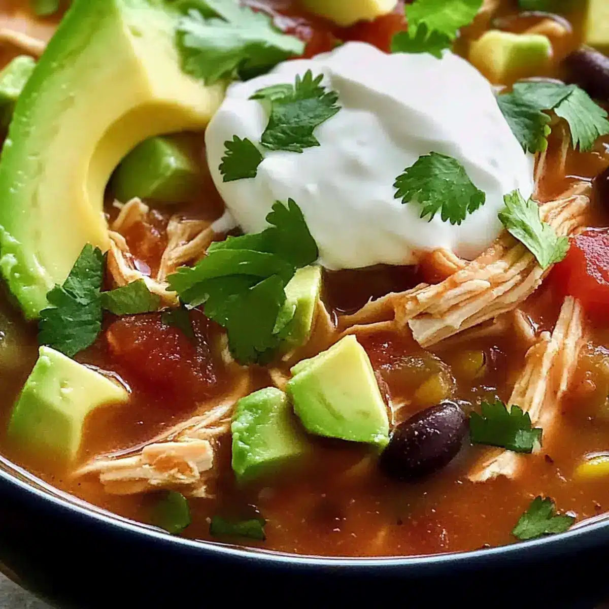 Toppings: Sour cream, avocado, cilantro, grated cheese – Each adds delightful creaminess, freshness, and texture to your delicious Slow Cooker Chicken Tortilla Soup.