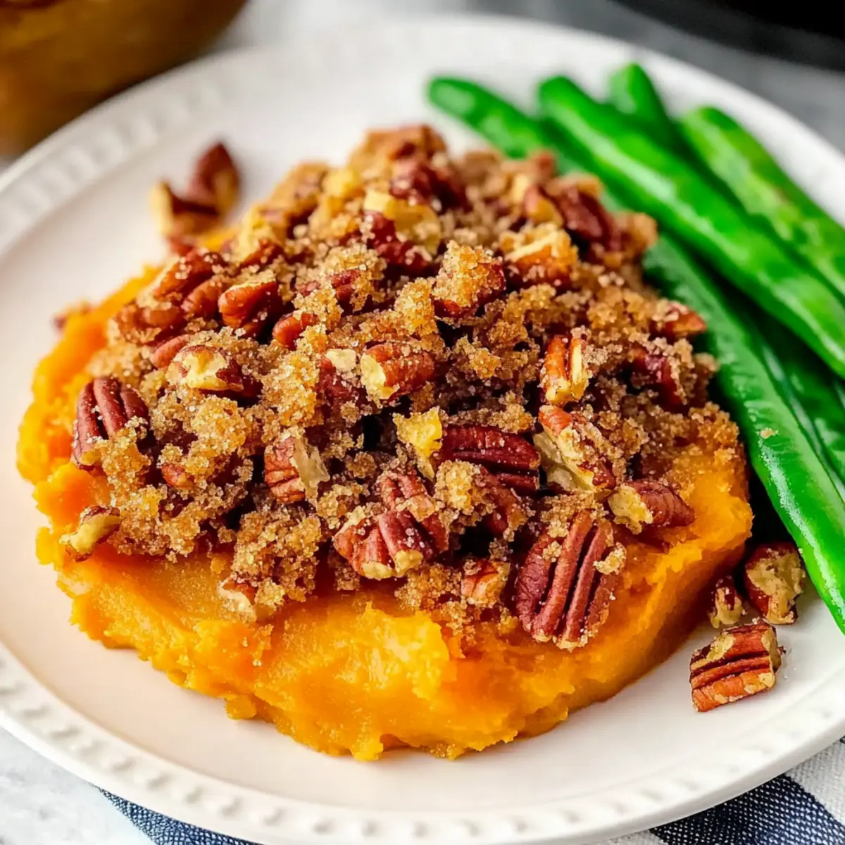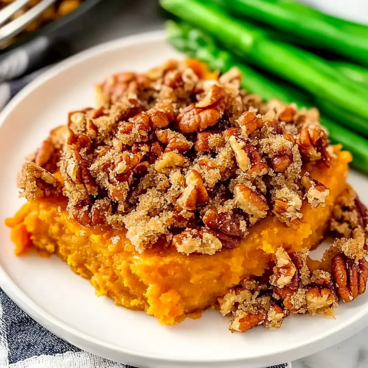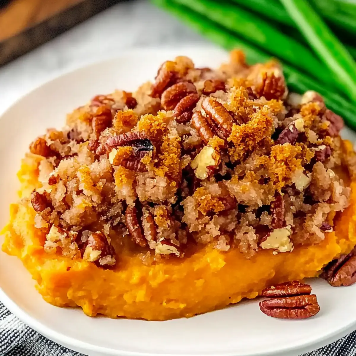 Comforting Twist: This dish offers a delightful blend of creamy sweet potatoes and a crunchy pecan topping that elevates traditional comfort food to new heights.