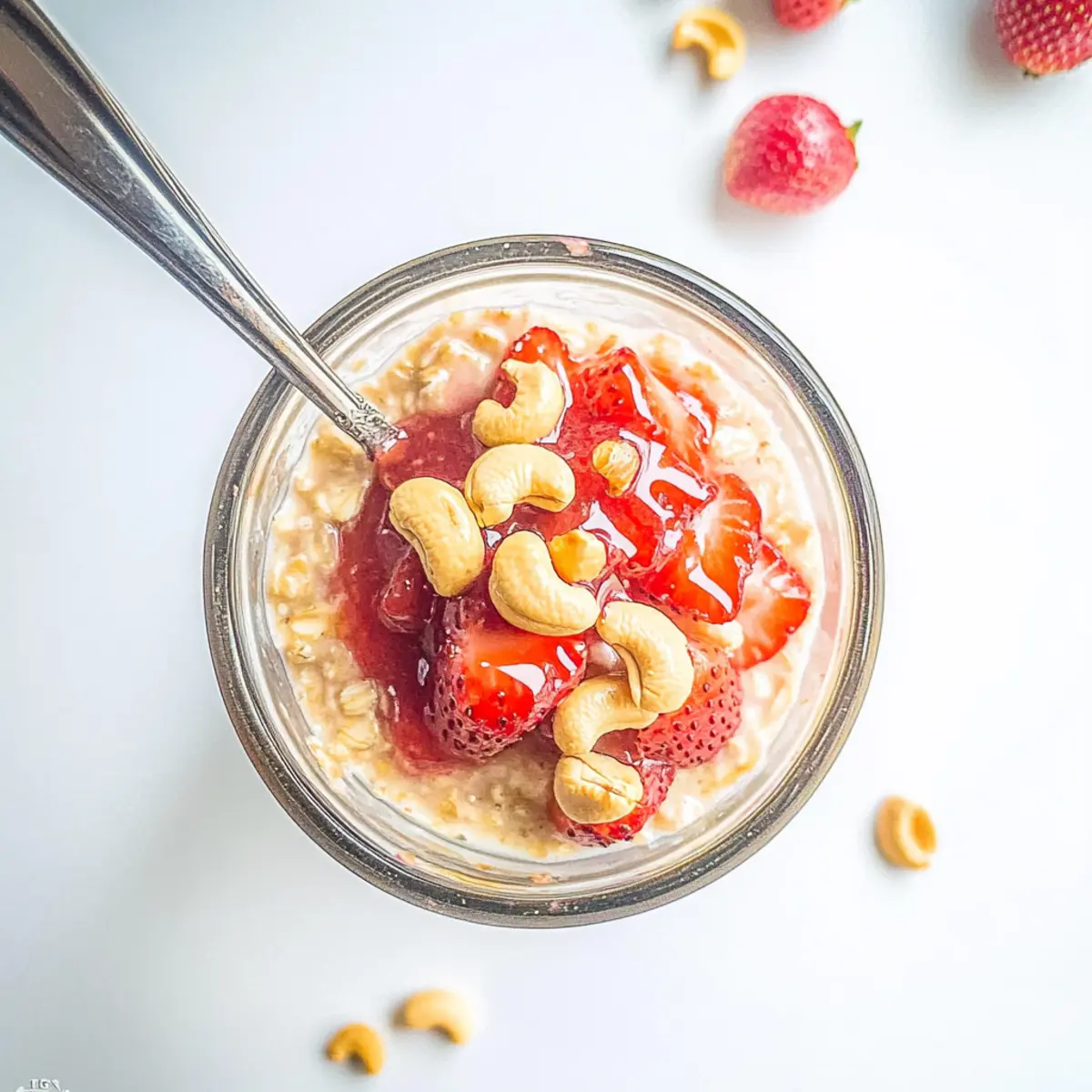 To ensure that your cashews stay crunchy, I recommend adding them just before serving instead of mixing them in the night before. This will preserve their delightful crunch and enhance the overall texture of your Strawberry Cheesecake Overnight Oats.
