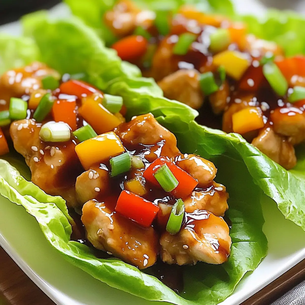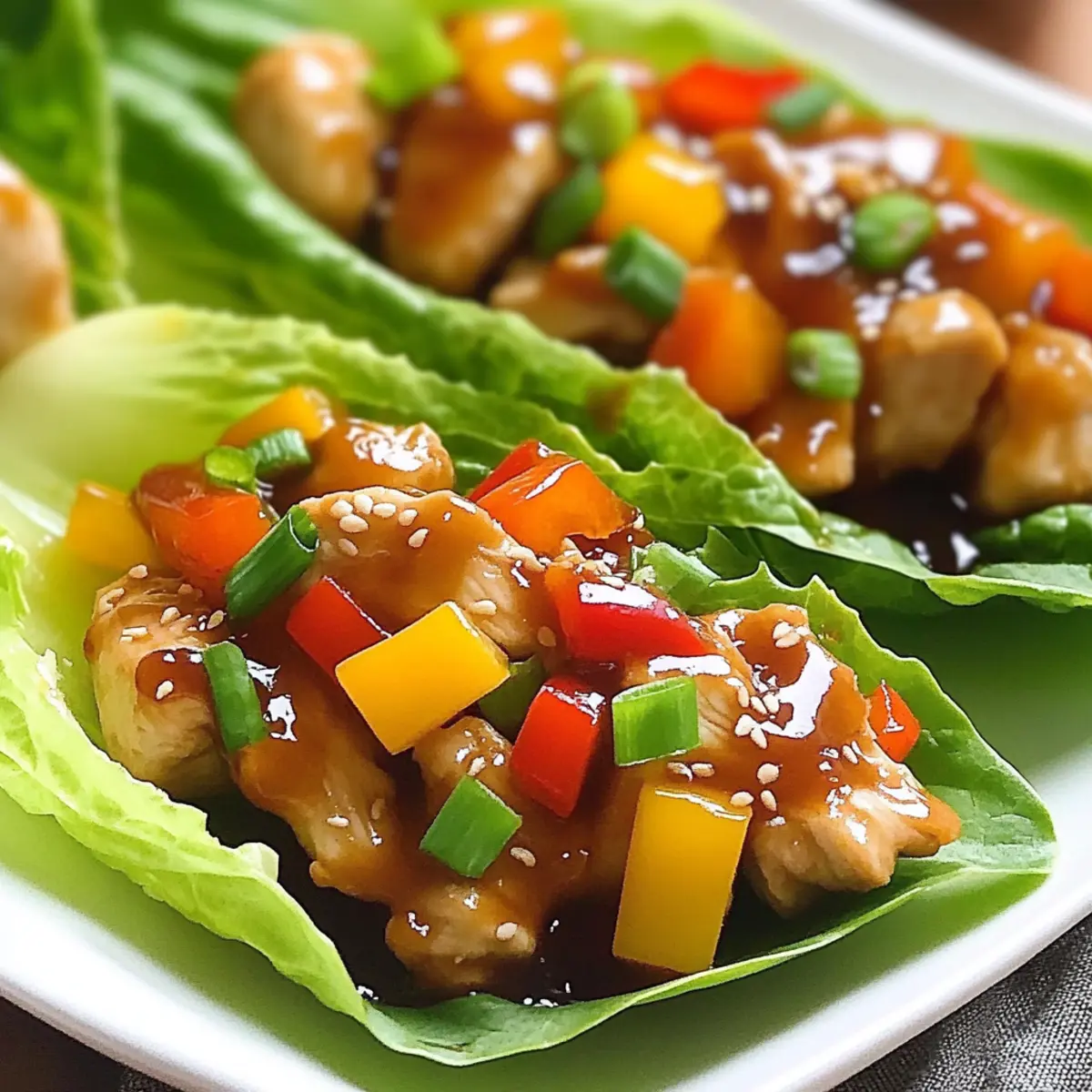 In the last 3-5 minutes of cooking, add 1 cup chopped bell peppers, ¼ cup chopped green onions, and 1 cup grated carrots to the chicken. Stir quickly to combine, allowing the veggies to retain their crunch. The vibrant colors will brighten your Teriyaki Chicken Lettuce Wraps and add delightful textures.
